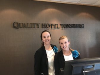 MOTTAR: Bookingsjef Elin Bekkevold (t.v.) og Madeleine Poulsson er klar til å motta nesten 500 SKUP-deltagere neste helg.
